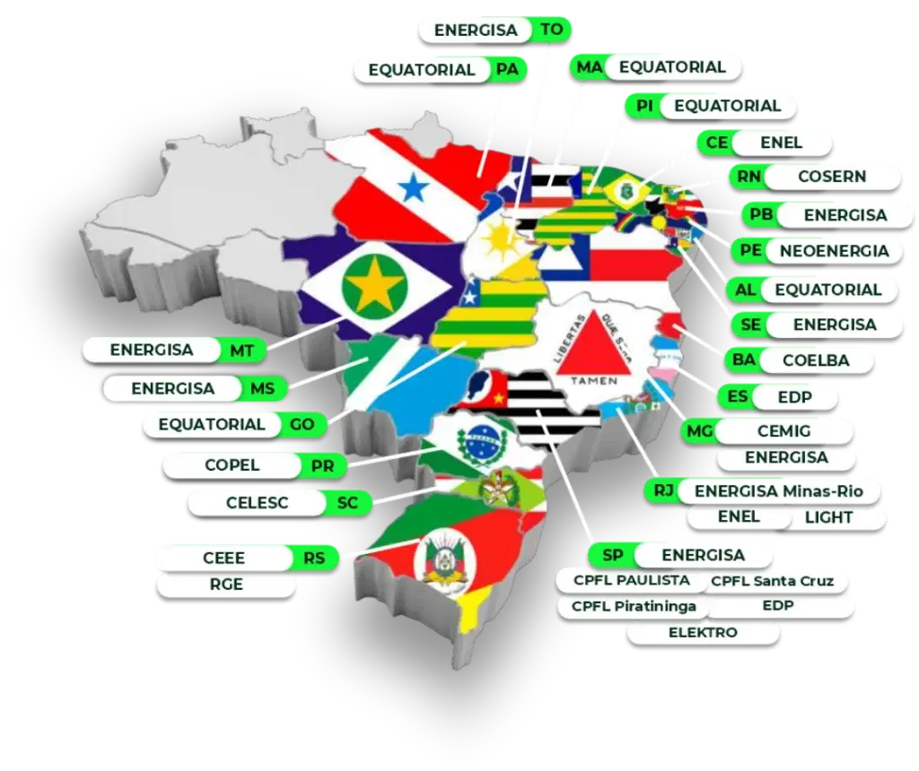 Nossa fazenda solar injeta energia renovável na rede da concessionária do seu estado.