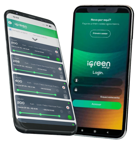 Use o app iGreen para visualizar seus descontos, faturas e benefícios mês a mês.